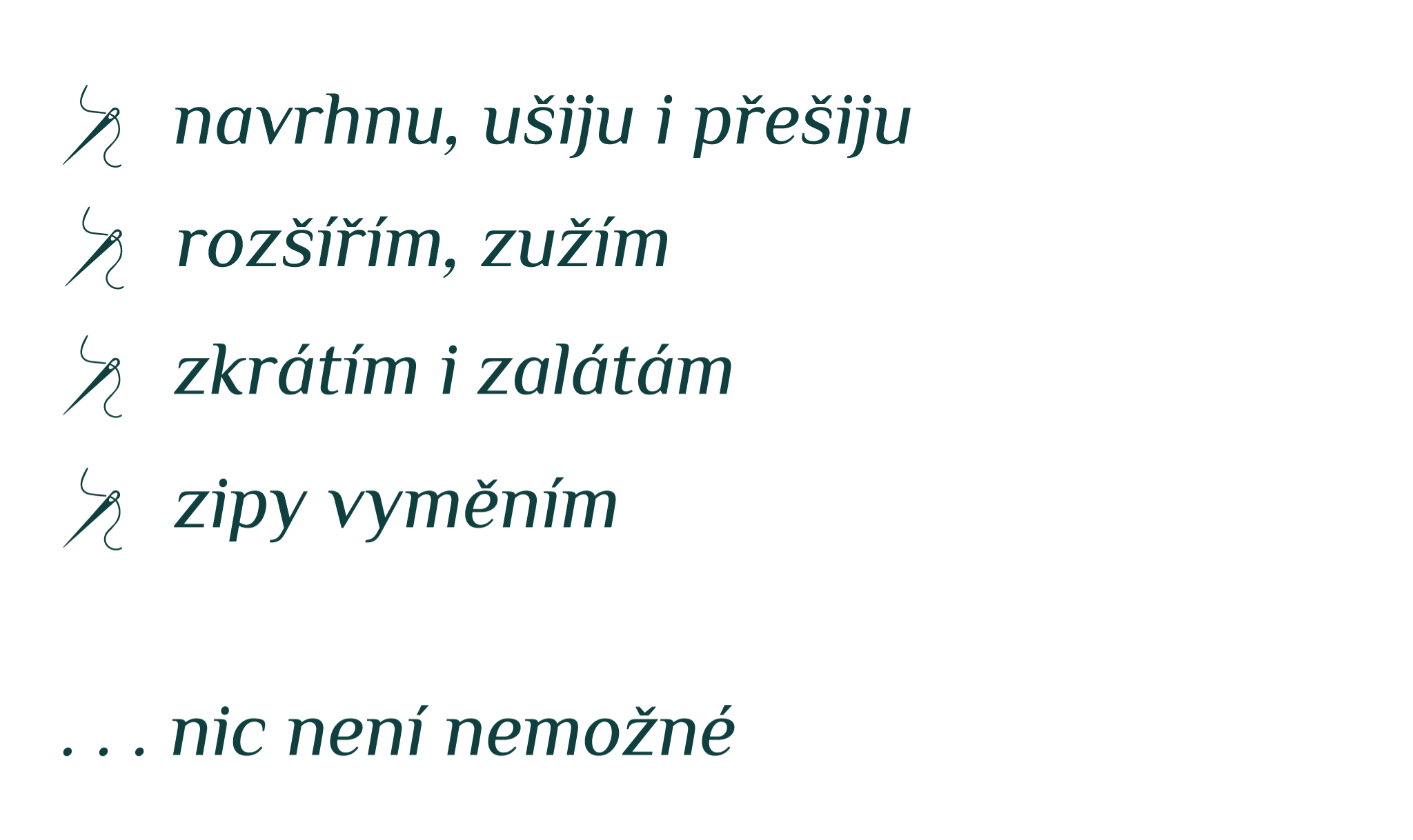 Oděvy k opravám a přešívání přijímám pouze v čistém a vypraném stavu! Děkuji za respektování